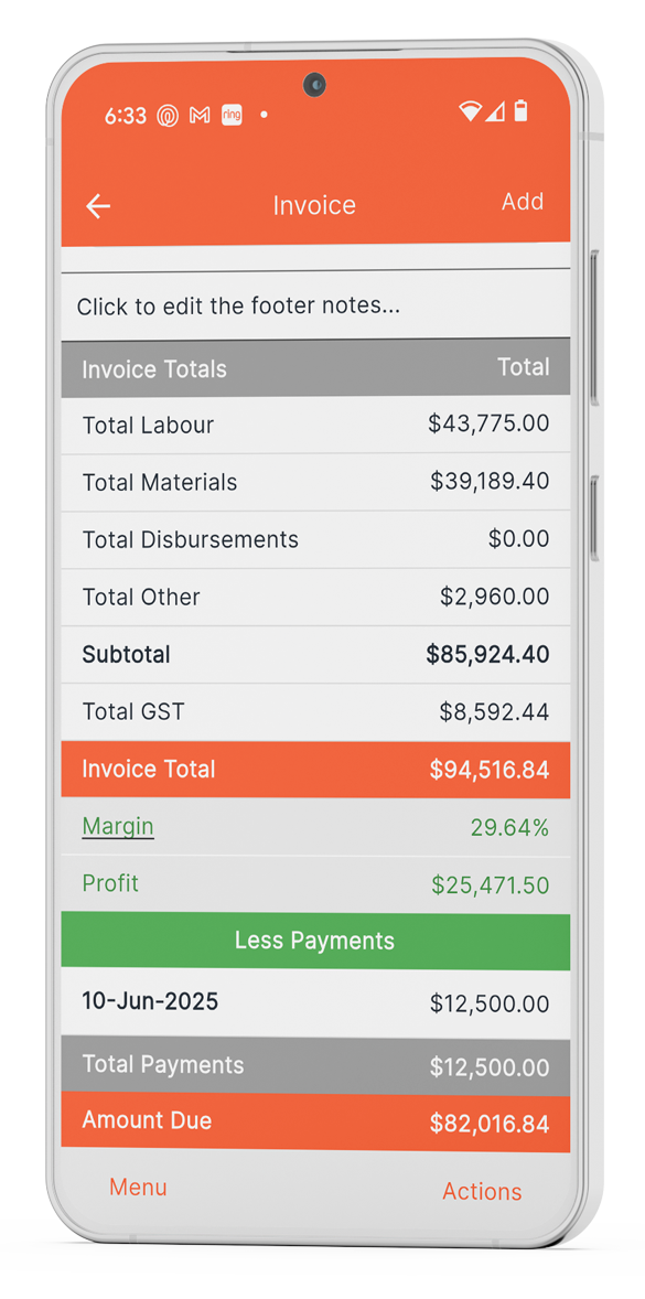 NextMinute is designed to reduce these delays by keeping your job info in one place. It’s much easier to answer questions like “When was this variation approved?” or “What’s included in this line item?” when everything is attached to the job.