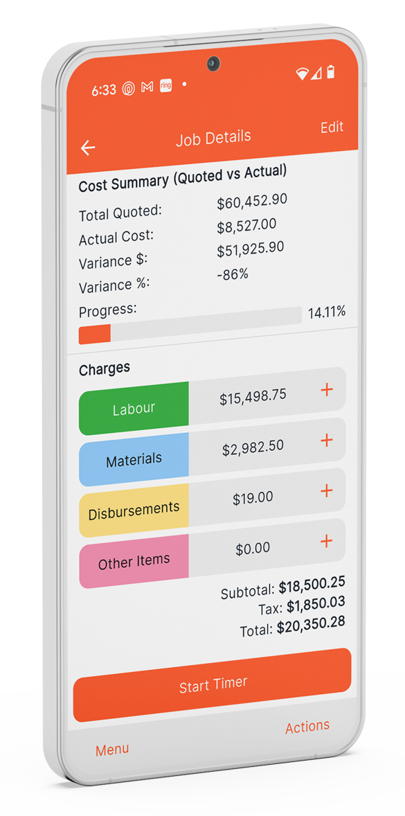 And because it’s all connected (quoting, timesheets, invoicing, cost tracking) you can manage the whole job from start to finish in one place.